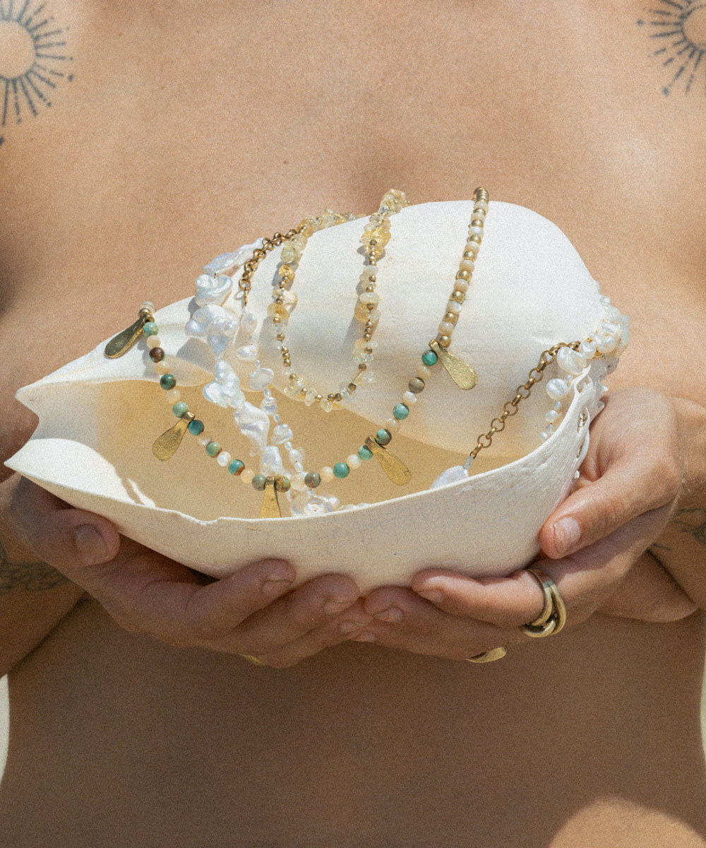 Our brass and gold-filled beads, clasps, and chains are nickel and lead free, chosen with your health and wellbeing in mind. Less toxic, more radiant, made to be worn close to the skin with confidence.